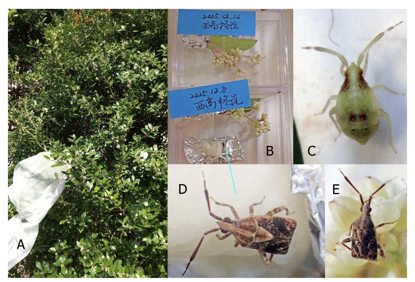 最近,西日本の市街部・都市部を含む平地において,かつて冬季には見られなかったカメムシ類の,12 月以降の冬期採集事例が増加傾向にある(安永ら 2018;福田ら 2021;橋口ら 2021;安永 2021)。ここ数年間,長崎西高等学校生物部の代々研究メンバーを中心に,長崎市内における冬期間の昆虫調査を不定期に実施してきたが,本 2025 年度,長崎西高校構内で 12 月に開花するヒイラギ Osmanthus heterophyllus の花穂に,カスミカメムシ類が集まって活動を続けていることを確認した。これらの中で,注目すべきものがタイワンメンガタカスミカメ Eurystylus ryukyus Yasunaga, Nakatani & Chérot, 2017 である。本種は亜熱帯起源で今世紀になって九州本土や四国南岸に分布を拡大したとされるが(Yasunaga et al. 2017),温帯域で 12 月に幼虫を含む多くの個体が見られるのは,明らかに地球温暖化や都市化(ヒートアイランド現象)によるものと考えられる。本文では,これらの冬季発生について考察するとともに,室内で飼育を試みたところ 2 ヶ月近く生存し,適当な温度が保たれれば世代を繰り返しうる可能性も示唆されたので報告したい。